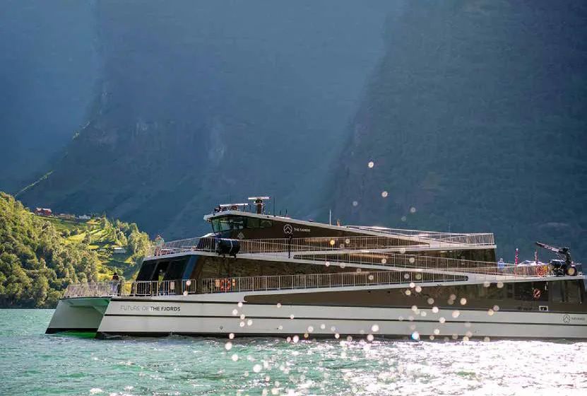 “峽灣未來(lái)”號(hào)作為世界上第一艘全電動(dòng)碳纖維船舶,代表了對(duì)環(huán)境負(fù)責(zé)的客運(yùn)船舶的最新標(biāo)準(zhǔn)。這款電動(dòng)雙體船的開(kāi)發(fā)與公司對(duì)于最大程度減少對(duì)挪威峽灣的環(huán)境影響的目標(biāo)一致,同時(shí)將最大限度地提高乘客的自然美景體驗(yàn),該航線位于原始的Nærøyfjord內(nèi),屬于聯(lián)合國(guó)教科文組織世界遺產(chǎn)公園。