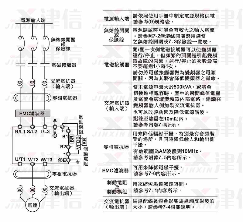 打開變頻器上蓋后,露出各接線端子排,檢查各主回路電路及控制回路電路之端子是否標示清楚及接線時注意以下各項說明,干萬不要接錯線: