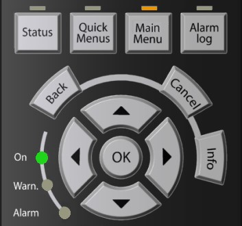 丹佛斯變頻器參數(shù)通過操作面板進行設(shè)置。其中,方向鍵代表設(shè)置對象的切換選擇,上下兩鍵對設(shè)置值進行設(shè)定,OK鍵代表確認選擇,Back代表返回上一級菜單,Cancel代表取消當前設(shè)置選擇,Info鍵代表查看幫助信息。