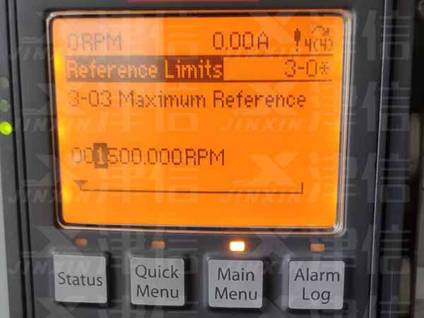 使用上下鍵選擇3-02,進(jìn)行最小頻率設(shè)置,此時(shí)的單位是RPM轉(zhuǎn)速