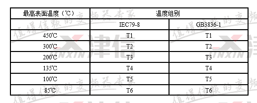 這是與氣體點燃溫度有關的電氣設備(假定環境溫度為40℃時)的最高表面溫度,點燃能量與點燃溫度無關。在標準BS5345第一部分中列出了所有可燃性氣體和其組別。