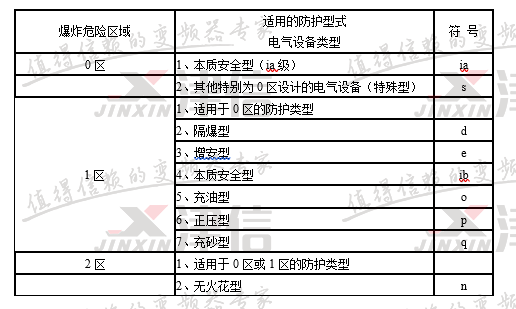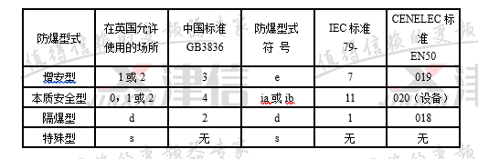 ②氣體爆炸危險場所用電氣設備防爆類型選型表