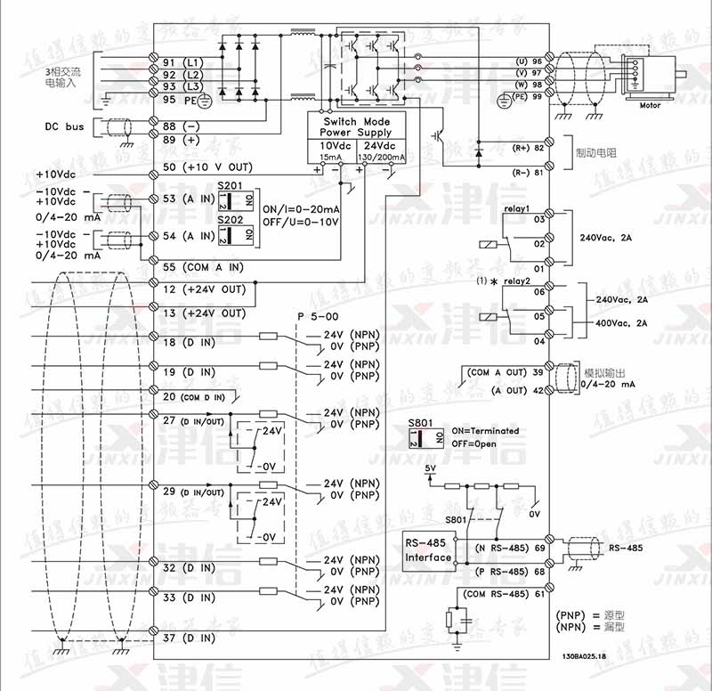 2、內(nèi)置直流電抗器,有效降低電源的諧波干擾,符合IEC-1000-3-2國際標準。設計緊湊、無需外部選件。