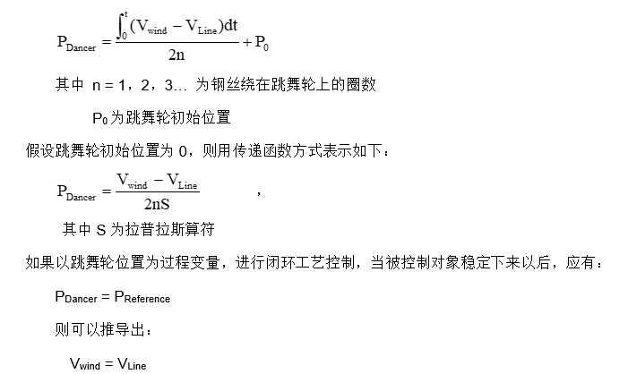 根據(jù)動(dòng)滑輪的物理性質(zhì),跳舞輪的位移PDancer與卷繞線速度Vwind、VLine有如下關(guān)系: