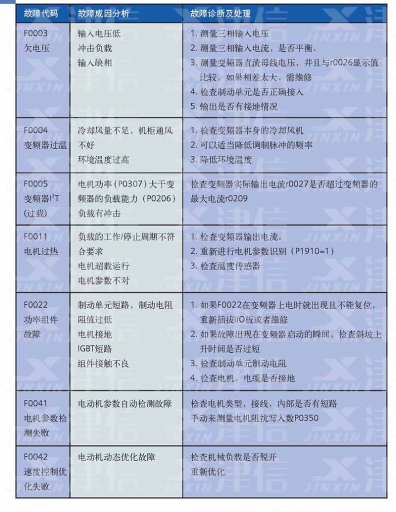 二、F0003欠電壓,F(xiàn)0004變頻器過溫,F(xiàn)0005變頻器過載,F(xiàn)0011電機過熱,F(xiàn)0022功率組件故障,F(xiàn)0041,F(xiàn)0042