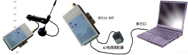 圖1 GPRS模塊及設置參數時與電腦連接示意圖