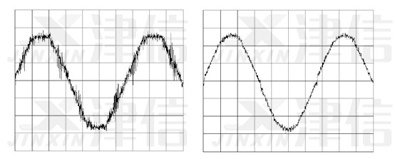 u 圖9所示是加裝直流電抗器以后測量到的電源電壓的波形。可以看出電源電壓得到了明顯的改善,平頂波消失了,傳導干擾明顯減小。電源電壓更接近于平滑的正弦波。