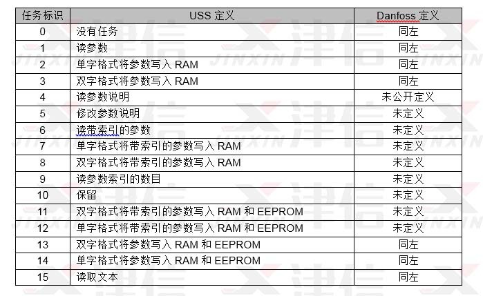 S7-200 USS4通訊子程序中用到的任務標識與Danfoss的定義相同。